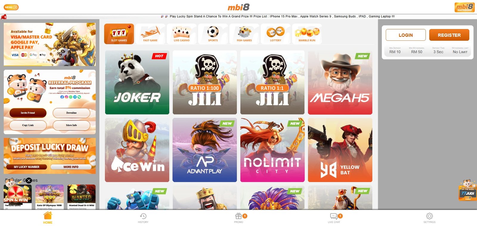 You may play table games, live dealer games, and slot machines with MBI123. Bet, have fun, and most importantly, play anytime you want!